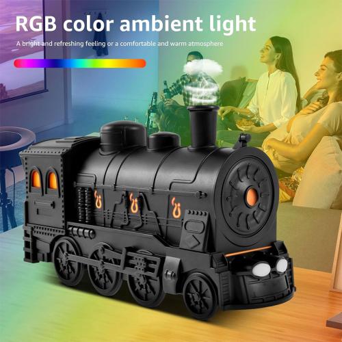 يأتي الجهاز مزوّدًا بإضاءتين ملونتين (أزرق بارد / لهب دافئ) لتمنح الجو لمسة واقعية وساحرة كما لو كان قطارًا حقيقيًا ينبعث منه البخار.